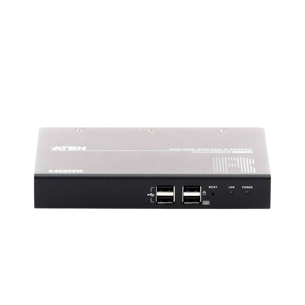El extensor KVM HDMI sobre IP delgado KE8900SR es un receptor basado en IP compacto y asequible de alto rendimiento que permite el acceso a un sistema informático desde una consola remota USB (teclado USB, mouse USB, monitor HDMI a través de intranet, lo que permite a los usuarios ubicar computadoras en un entorno seguro y con temperatura controlada, aislado de la estación de trabajo de los usuarios. Todos los extensores se pueden emparejar con cualquier receptor o transmisor de la serie KE*.