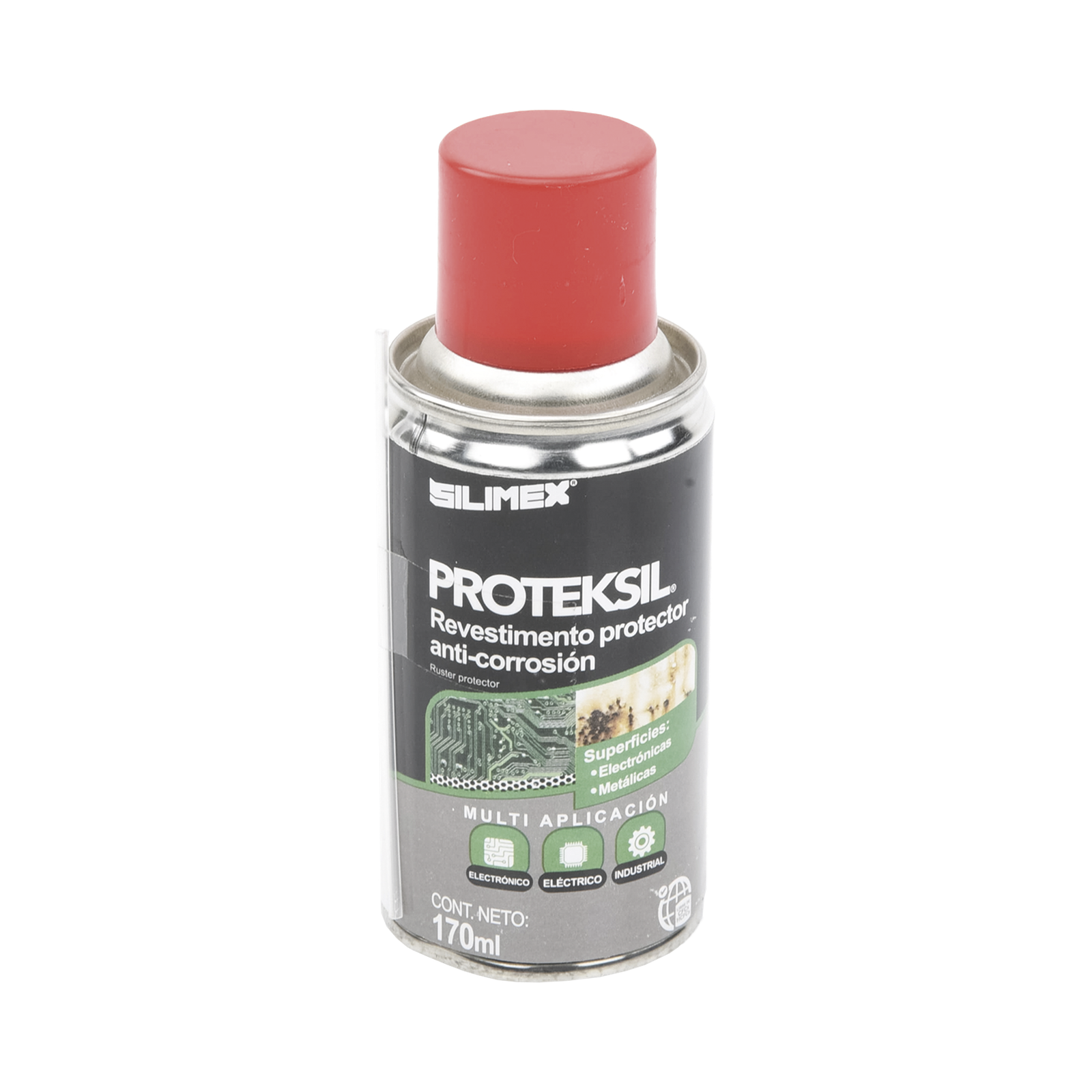 Proteksil es un protector en aerosol anticorrosivo que puede usarse para proteger tarjetas o circuitos electrónicos, evita la corrosión en los conductores, tornillos, partes metálicas aún en ambientes húmedos.