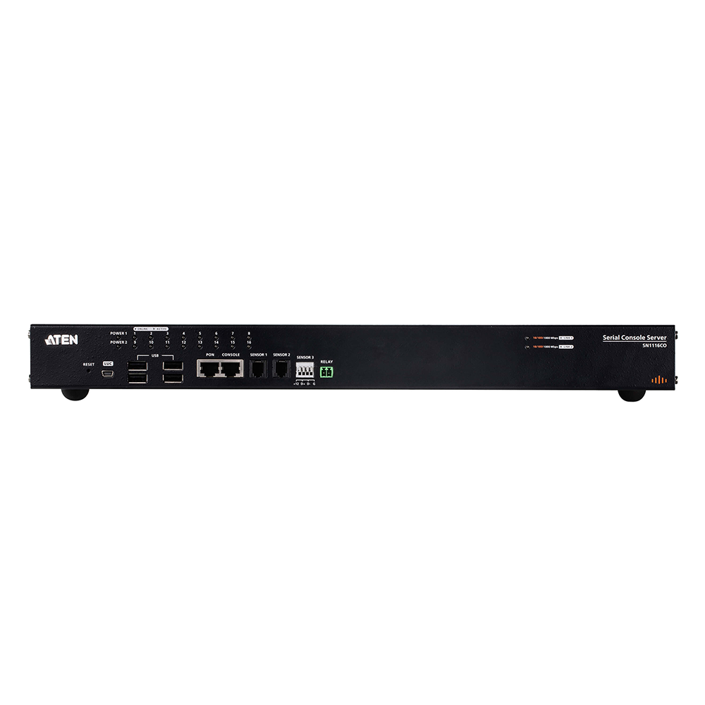 La serie SN11xxCO de ATEN (modelos SN1116CO, SN1132CO y SN1148CO) permite a los administradores de TI acceder de forma segura a dispositivos serie en centros de datos o ubicaciones remotas. Ofrece alimentación redundante, conexiones RS-232 y USB, y compatibilidad con dispositivos Cisco sin cables adicionales. Soporta detección automática de dispositivos, monitoreo ambiental y seguridad avanzada con cifrado TLS 1.2 y certificados RSA.