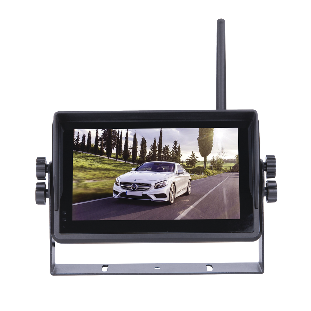 El Sistema Inalámbrico con Cámara Infrarroja a Color y Monitor de 7' ofrece una solución insuperable para videovigilancia de vehículos, proporcionando imágenes nítidas y claras, con la facilidad y flexibilidad de un dispositivo inalámbrico. Este conjunto avanzado mejora las capacidades de monitoreo y grabación, brindando control y seguridad adicionales en cualquier vehículo o maquinaria pesada.