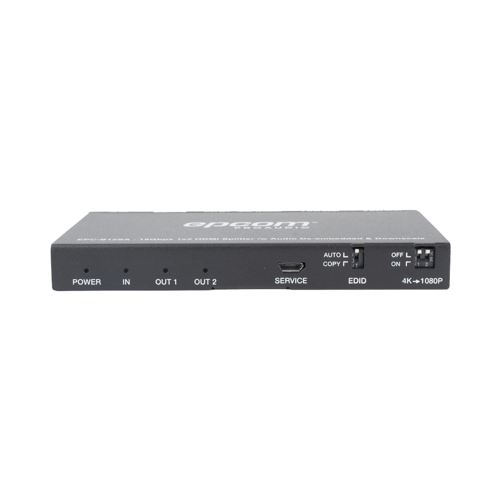- Los puertos de salida admiten derivación de señal y función de reducción de escala 4K->1080P a través del interruptor de dial en el panel