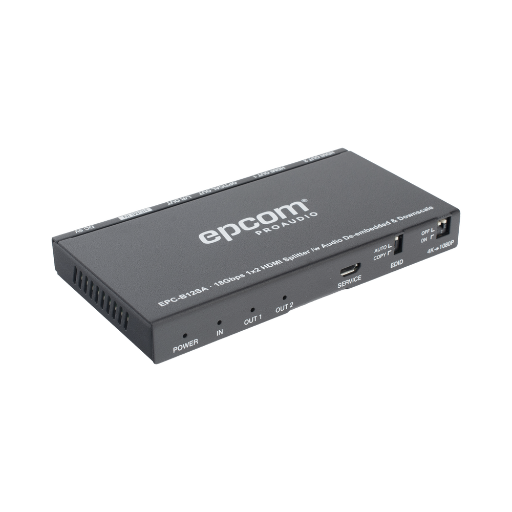 El divisor HDMI 1×2 de 18 Gbps puede distribuir 1 señal de fuente HDMI a 2 dispositivos de visualización HDMI. Admite resolución de hasta 4K2K@50/60Hz (4:4:4). Este producto admite extracción de audio desde una fuente HDMI a salida óptica y analógica. Se pueden seleccionar dos modos EDID (COPIA/AUTO). Todos los puertos de salida admiten función de derivación de señal y reducción de escala de vídeo (4K->1080P).