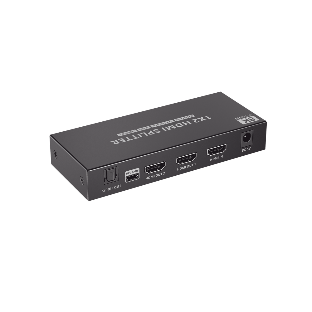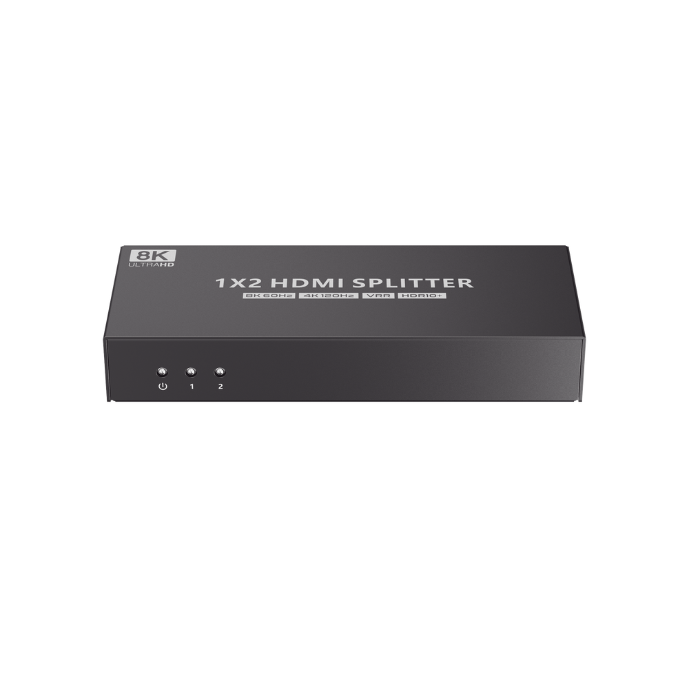 Este producto es un divisor HDMI de alta calidad que permite dividir una señal de entrada HDMI en dos salidas HDMI. Cumple con el estándar HDMI2.1 más reciente, lo que garantiza una transmisión de vídeo de alta calidad con resoluciones de hasta 8K @ 60Hz/4K @ 120Hz/1080p @ 240Hz. Además, cuenta con HDR10+, Dolby Vision y frecuencia de actualización variable (VRR) para una mejor calidad de imagen y una visualización más suave. Este dispositivo es ideal para su uso en tiendas de TV, cines, publicidad exterior y entretenimiento en el hogar.