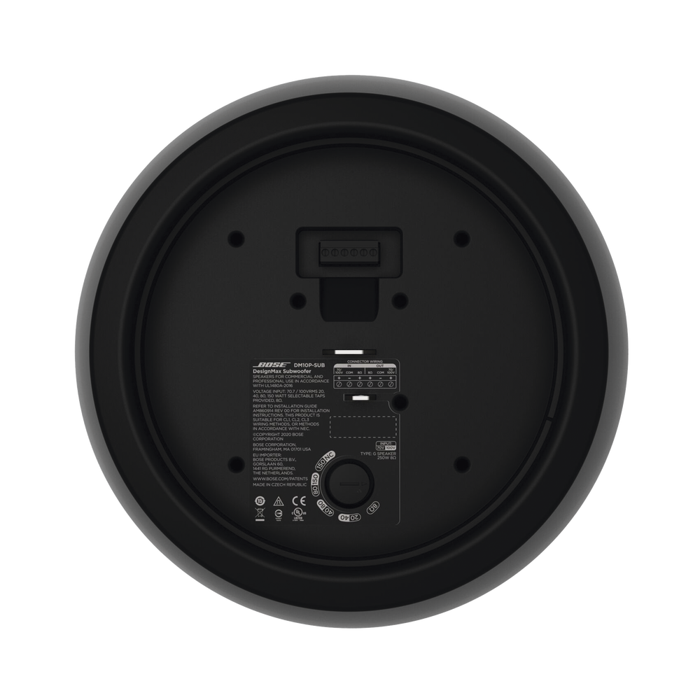 Gracias a su excelente rendimiento de baja frecuencia, los subwoofers DesignMax proporcionan graves impresionantes en cualquier instalación de sonido comercial. El Bose Professional DM10P-SUB de 300 W es un subwoofer colgante de 10′ con un rango de frecuencia de 40 Hz a 125 Hz y cuenta con un sistema de suspensión empotrado de un solo punto para una apariencia elegante y atractiva, y está disponible en blanco o negro.