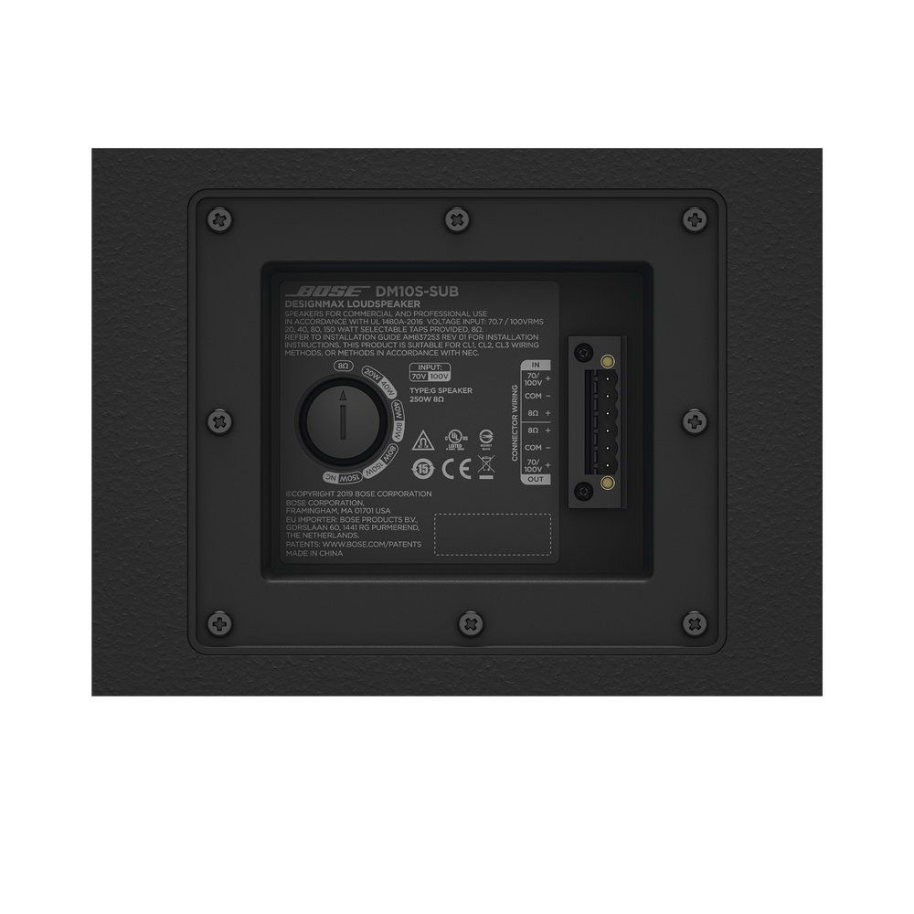 Gracias a su excelente rendimiento de baja frecuencia, el subwoofer DM10S-SUB de 300W proporciona graves impresionantes en cualquier instalación de sonido comercial.
