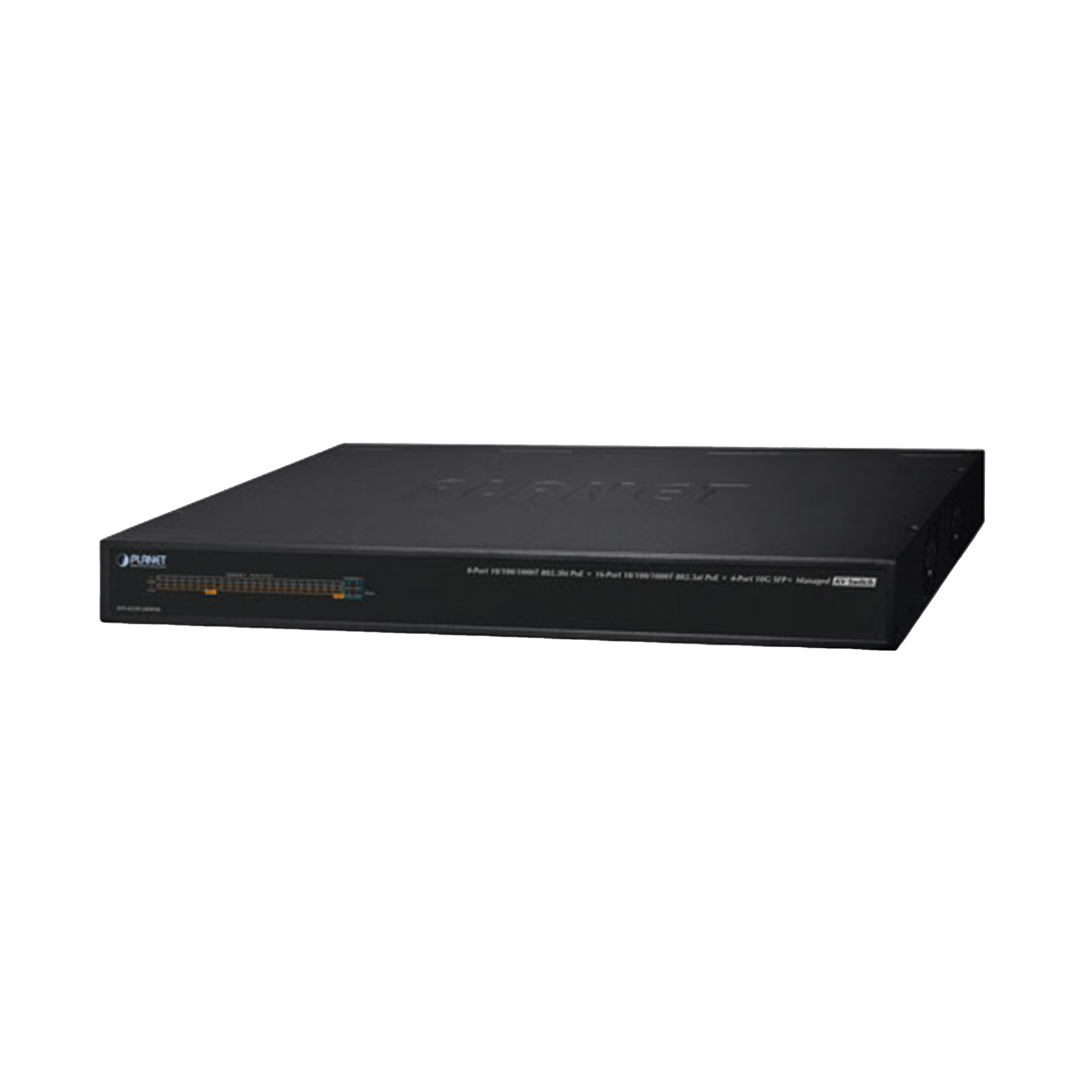 El AVS-4210-24HP4X, un concentrador central diseñado por expertos para dispositivos compatibles con Dante, permite una configuración audiovisual unificada y sofisticada. Las computadoras portátiles, amplificadores y micrófonos se conectan a su red con facilidad. Este conmutador Ethernet no solo simplifica las conexiones sino que también garantiza un sonido de primer nivel con calidad de estudio en todo el sistema.