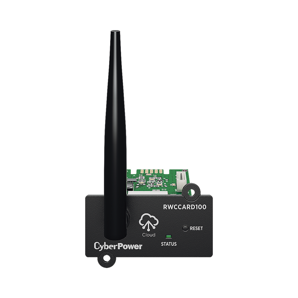 RWCCARD100 es un complemento de administración opcional para la serie específica de UPS Cyberpower. Al insertar la tarjeta en la ranura de expansión en el UPS, los usuarios pueden agregarlo al sistema PowerPanel Cloud, permitiendo así la supervisión y administración remota del UPS, a través de un portal web seguro o aplicación móvil.