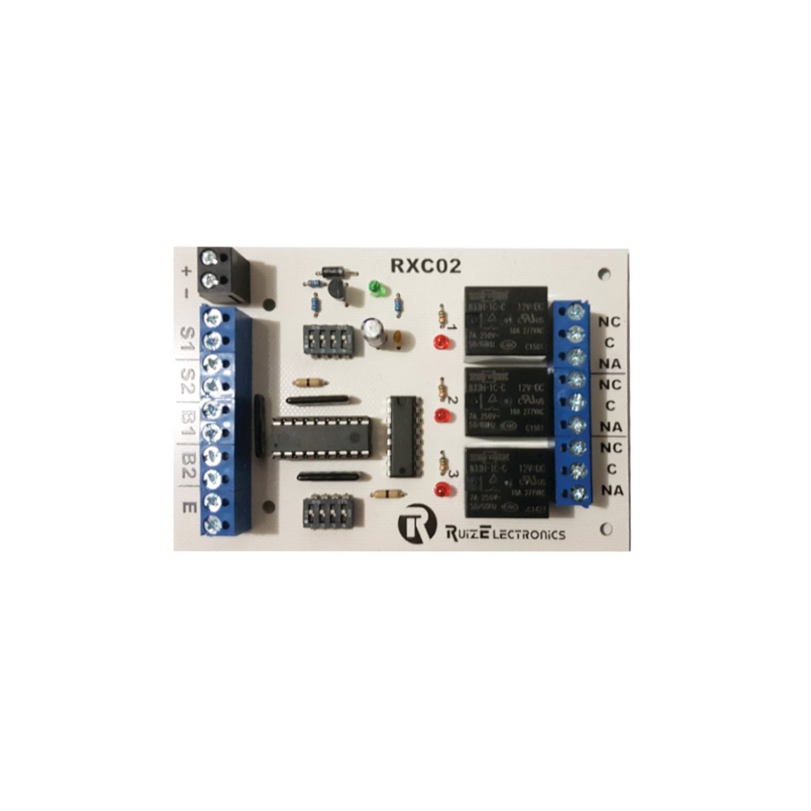 - Controla 2 puertas con salidas de relevador