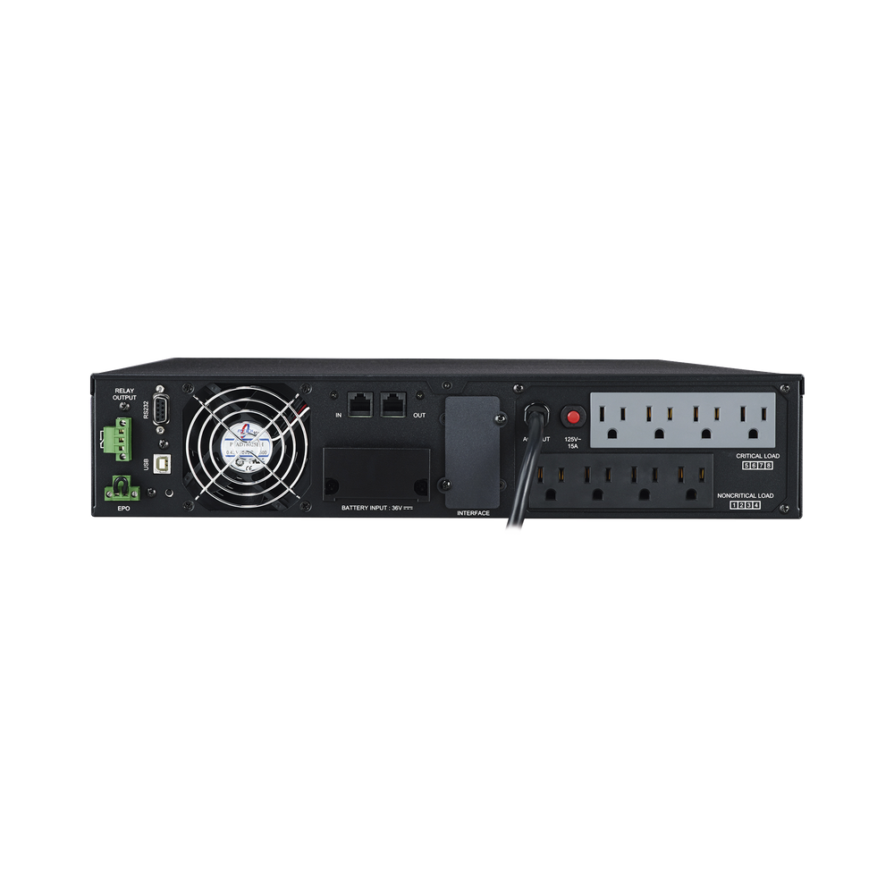 CyberPower OL1500RTXL2U garantiza protección de respaldo de energÃa para equipos de TI, servidores, estaciones de trabajo, NAS / dispositivos de almacenamiento, dispositivos de telecomunicaciones, dispositivos de red, sistemas de seguridad / emergencia y sistemas de vigilancia. El UPS adopta una topologÃa de doble conversión para proporcionar potencia de salida de alta calidad con modo ECO adicional para ahorrar energÃa y reducir costos. Este UPS compatible con generador incluye paquetes de baterÃas intercambiables en caliente para mantenimiento sin interrupción de energÃa y un interruptor de apagado de emergencia (EPO) para permitir a los usuarios apagar el UPS inmediatamente durante una emergencia.
