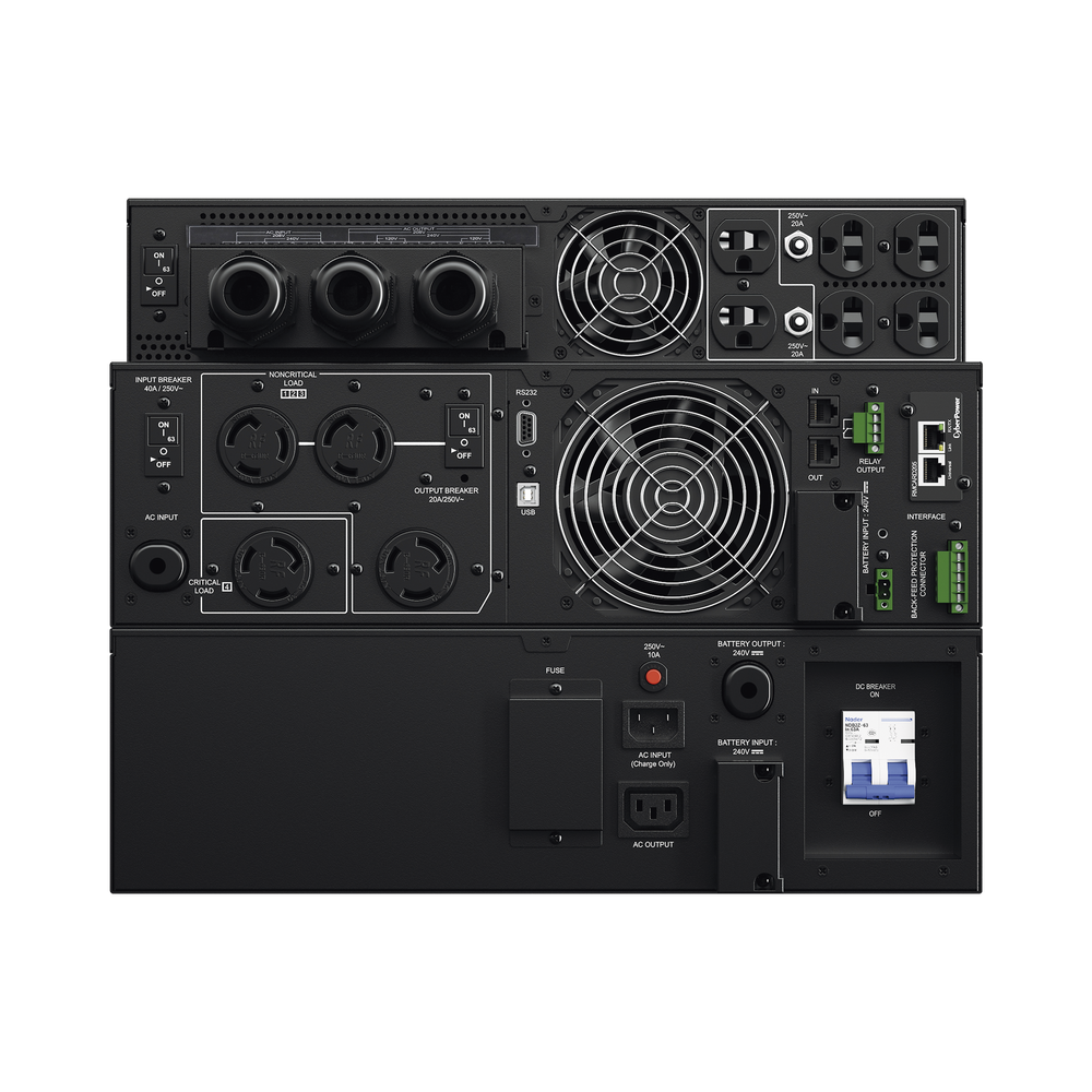 Este UPS compatible con generador incluye paquetes de baterías intercambiables en caliente para mantenimiento sin interrupción de energía y un interruptor de apagado de emergencia (EPO) para permitir a los usuarios apagar el UPS inmediatamente durante una emergencia.