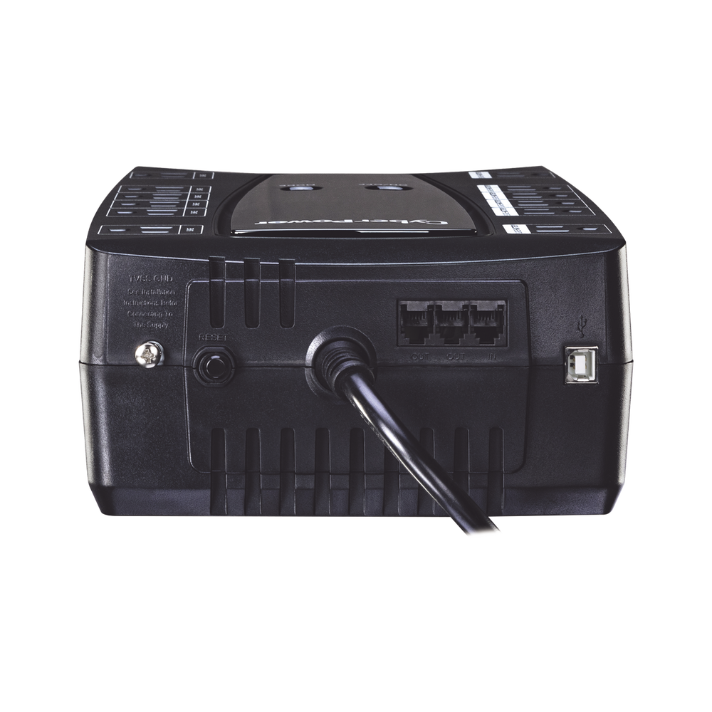 El UPS proporciona respaldo de batería, tomacorrientes protegidos contra sobretensiones y filtro EMI para proteger sus dispositivos. Su puerto incluido RJ11 / RJ45 puede proporcionar protección de línea de datos contra sobretensiones y picos. El indicador LED muestra el estado del UPS. Otras características incluyen batería reemplazable por el usuario y puerto de carga USB. También es compatible con PowerPanel® Power Management Software para realizar un apagado ordenado de la PC.